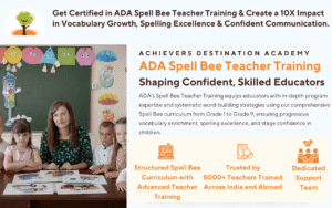 Get certified with our Spell Bee Teacher Training in Allahabad, designed for teachers, parents, and aspiring trainers. Learn effective methods to improve children’s spelling, vocabulary, and phonics through structured and engaging techniques.